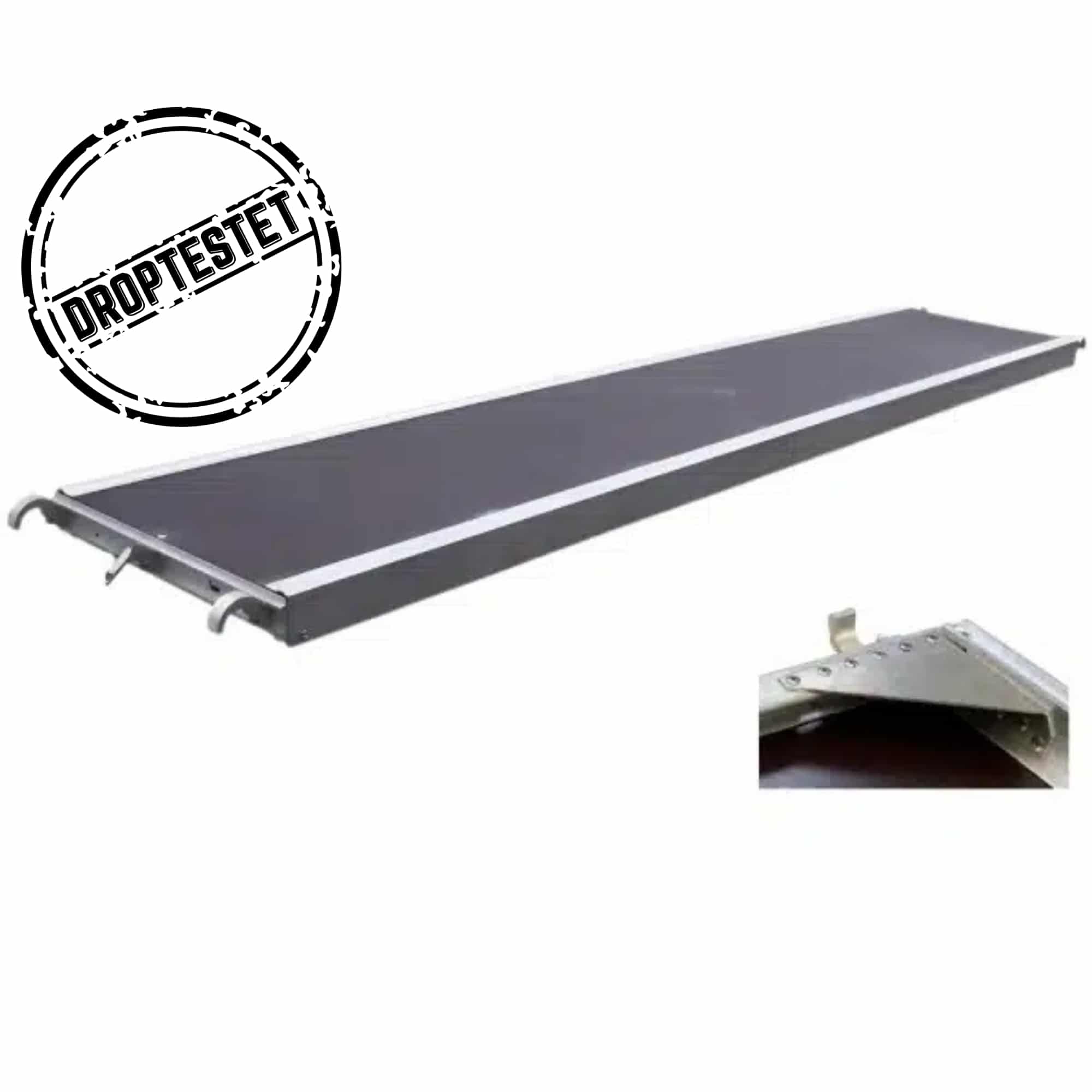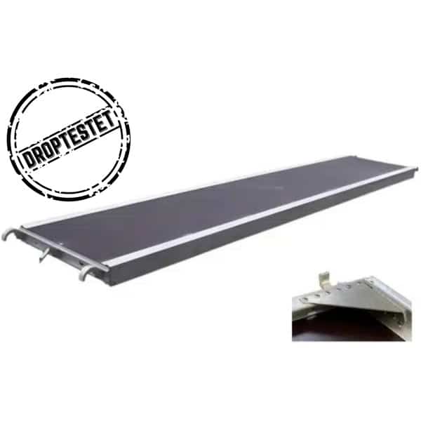 Dette droptestede Allround stilladsdæk er udviklet til krævende opgaver, hvor der stilles ekstra høje krav til sikkerhed og belastning. Dækket er droptestet, hvilket betyder, at det kan modstå de belastninger, der opstår ved arbejde i højden. Stilladsdækket er opbygget med kraftige aluminiumsvanger og kroge samt en stærk finerplade, der giver en stabil og sikker arbejdsplatform.
