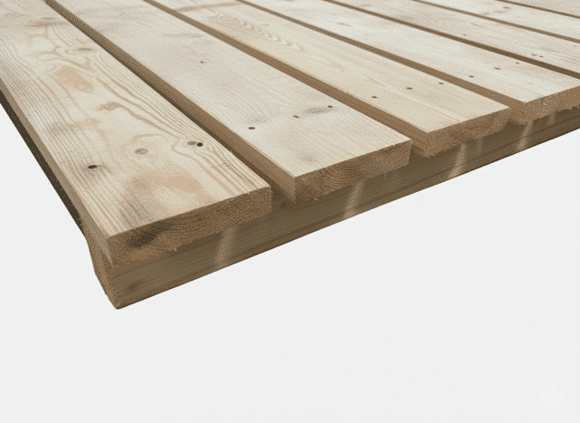 Konstruktionen er bygget op af gran i styrkeklasse C24, som sikrer høj styrke og lang levetid. Brædderne er 25 mm. tykke og 125 mm. brede - de to tværgående underlægter har dimension 45x95 mm.